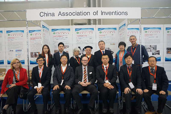 宣團長率中國發(fā)明協(xié)會部分代表與發(fā)明展主席HENNING(前排中)、歐洲發(fā)明協(xié)會副主席BRENKA(前排左1)、葡萄牙發(fā)明協(xié)會主席費爾南多(后排右1)合影